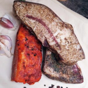 Пощастило кумам дістати трохи хорошого сала кучерявих свинок манґалиць і їхнє кулінарне відчуття привело до трьох видів смаків цього делікатеса: