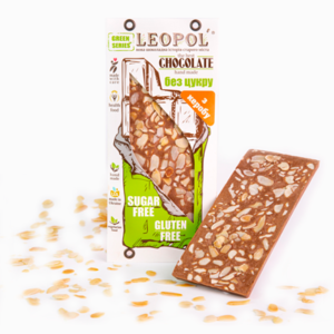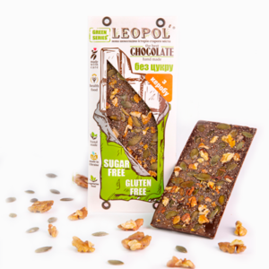 Шоколад без цукру, глютену та лактози на основі керобу, какао-масла з додаванням кокосового молока.