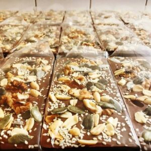 Секрет неймовірного смаку шоколаду криється в головному інгредієнті – багато-багато любові. Кожна плитка – ручна робота. Молочний шоколад з різноманітними додатками – душевний і корисний подарунок для найближчих.